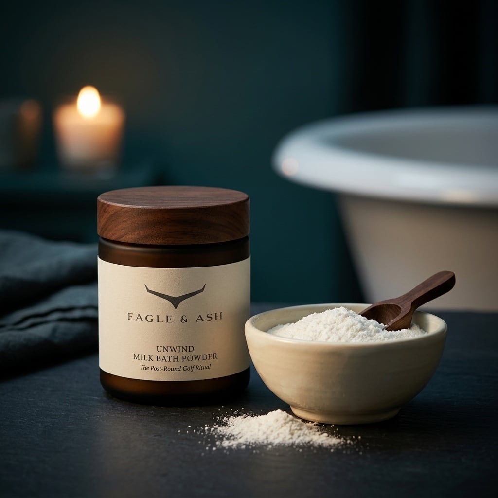 What burned through eighteen holes, now settles. Quiet apothecary for after the round — formulated in Latvia from 97% naturals.